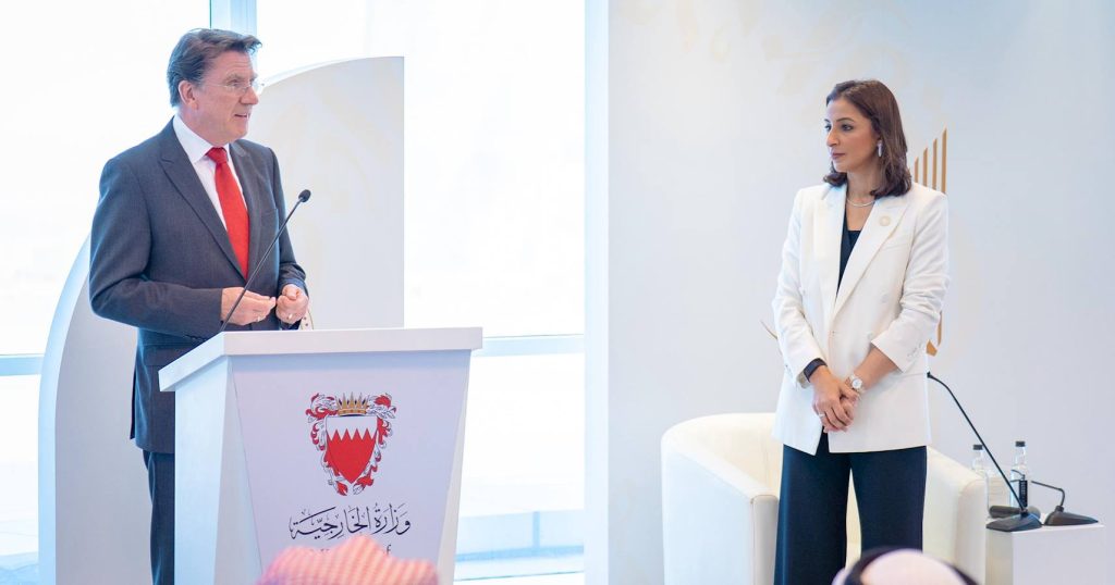 في إطار الملتقى الدبلوماسي الذي تنظمه وزارة الخارجية بمناسبة اليوم الدبلوماسي لمملكة البحرين والذي يصادف الرابع عشر من يناير من كل عام، شاركت سعادة السيدة نور بنت علي الخليف، وزيرة التنمية المستدامة الرئيس التنفيذي لمجلس التنمية الاقتصادية، في جلسة حوارية عقدت اليوم بعنوان “الترويج لفرص الاستثمار ونظام الإقامة الذهبية في مملكة البحرين”، وذلك بحضور أصحاب المعالي والسعادة رؤساء البعثات الدبلوماسية في الخارج، والمسؤولين بوزارة الخارجية.